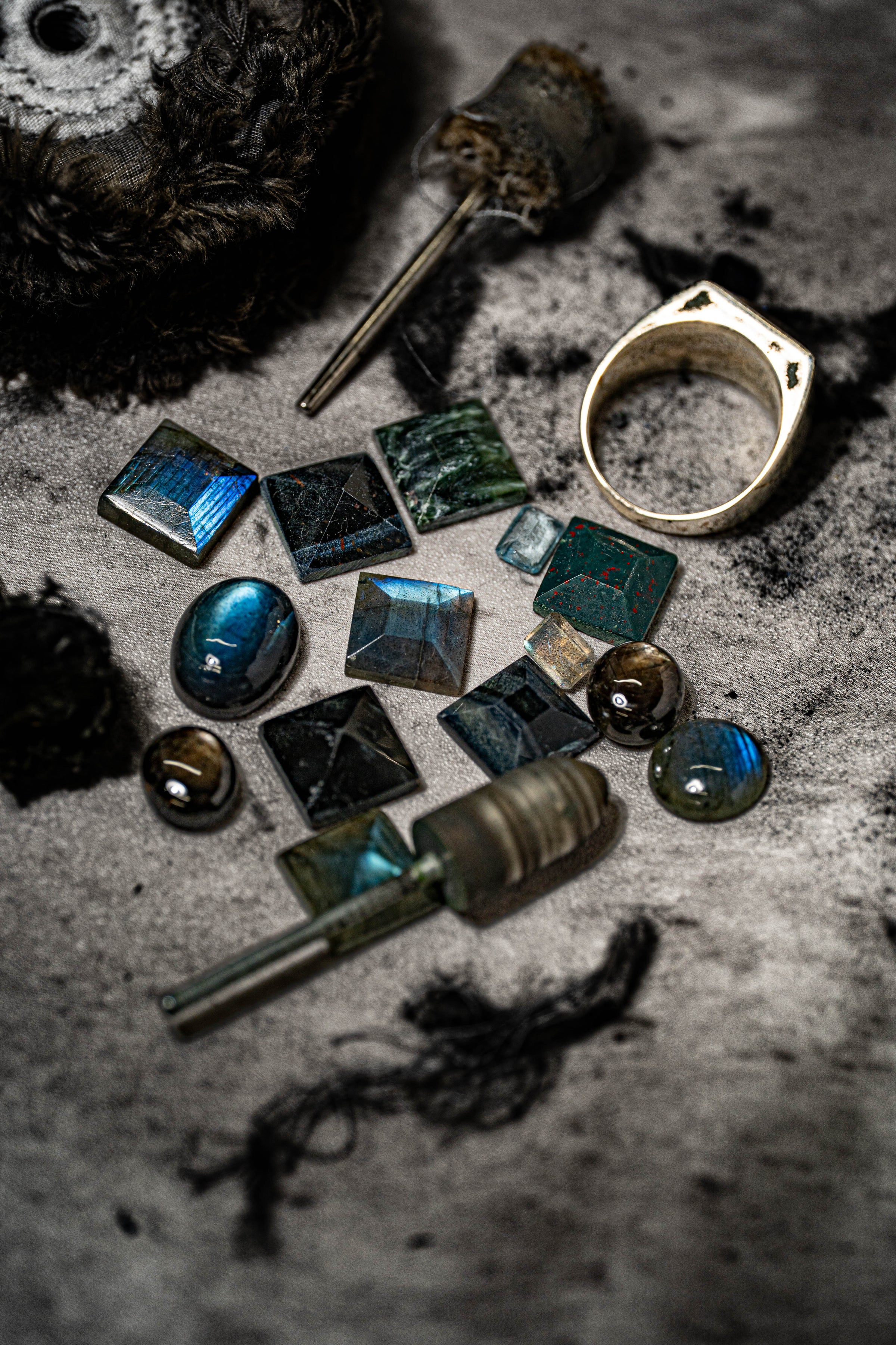 ラブラドライトのシラー効果で光の当たり方で色が変わって見えてとてもオシャレです。