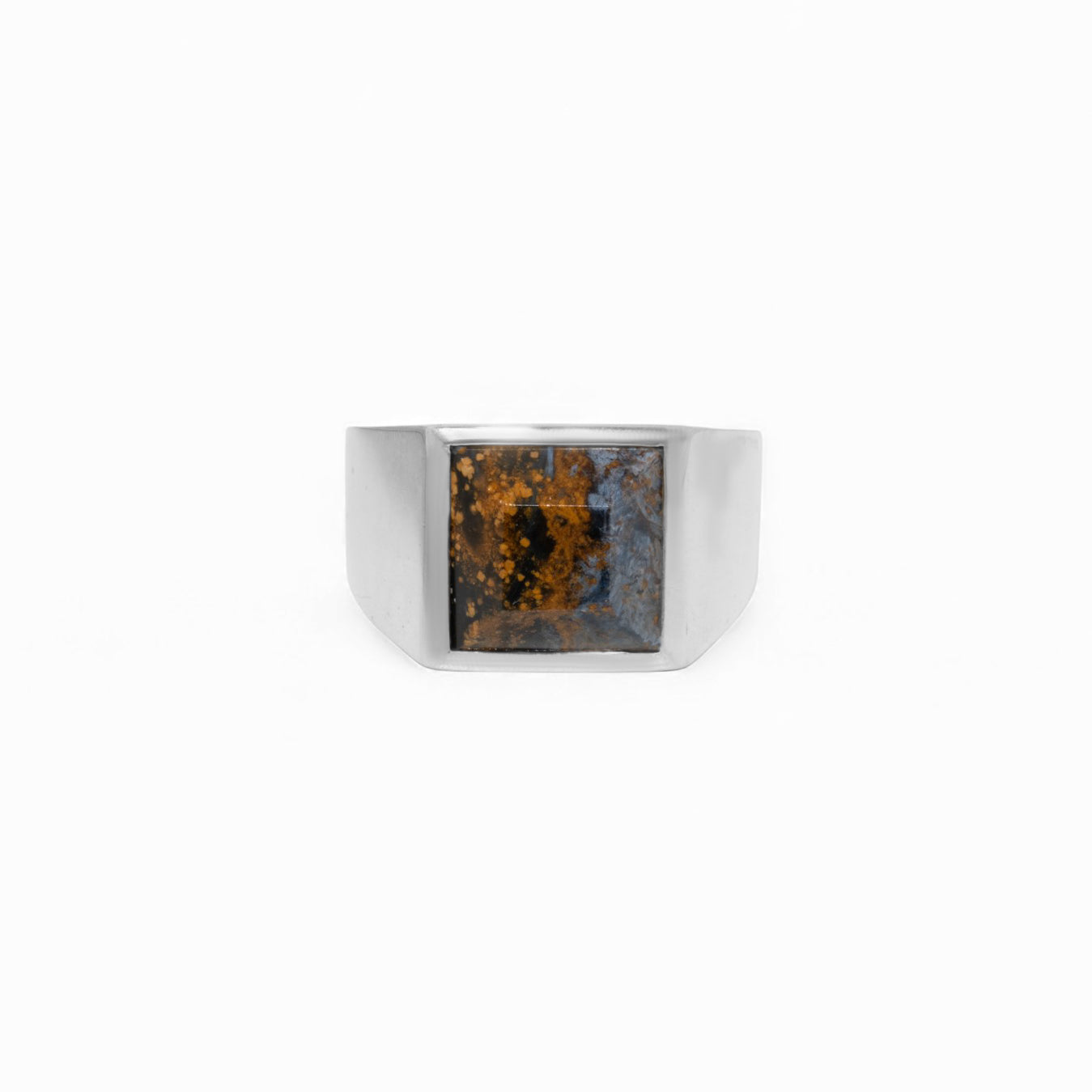 力強くも静かな表情を見せる天然石の個性を活かすよう、職人が一点一点スクエアカットを施し、シャープなシルエットが印象的なシルバーの台座と組み合わせました。