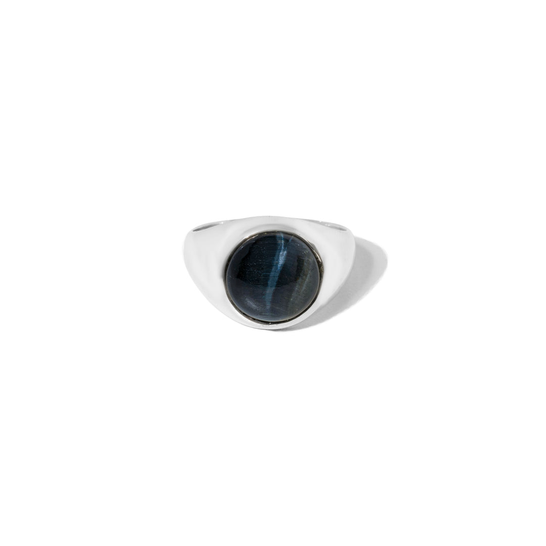 Blue Tiger Eye Round Cabochon Ring
